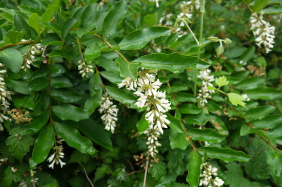 높이는 약 3m 내외로 자란다. 가지가 퍼져나고 작은가지에 털이 난다. 잎은 마주나고 타원형 또는 달걀 모양 타원형이거나 바소꼴이다. 잎 가장자리는 밋밋하고 끝과 밑이 뾰족하며 양면에 약간 털이 난다. 잎자루는 길이 1~2mm이고 겉면은 짙은 녹색, 뒷면은 연한 녹색이다. 꽃은 6월에 흰색으로 피는데, 지름 2~5cm로서 가지 끝에 원추꽃차례로 달린다. 화관은 길이 7~8mm이고 꽃밥은 화관 갈래조각의 중앙에 달린다. 열매는 핵과로서 달걀 모양으로 둥글고 9~10월에 검게 익는다.