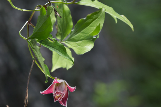 낙엽 덩굴성 목본으로 높이 3m 정도까지 자라지만 50cm 이하 개체들이 대부분이다. 땅속줄기는 길게 뻗으며, 지상 줄기는 가늘고 둥글거나 희미하게 각이 진다. 어린 가지는 흔히 붉은빛이 돈다. 겨울눈은 0.4~1cm이며 좁은 난형 또는 삼각형이다. 잎은 3출엽으로 마주나며, 작은 잎은 길이 3~7cm 정도의 장타원형~난형이다. 끝은 뾰족하며, 가장자리에는 치아상 톱니가 드물게 있고 흔히 1~2개의 결각이 있다. 꽃은 2.5~3cm이며, 적자색의 종 모양으로 5~6월에 피며 새 가지 또는 겨울눈에서 나온 짧은 가지 끝에서 아래를 향해 핀다. 열매는 길이 4~5mm 정도의 좁은 도란형으로 털이 많으며 끝에 길이 4.5cm 정도의 깃털 모양의 암술대가 남아 있다.