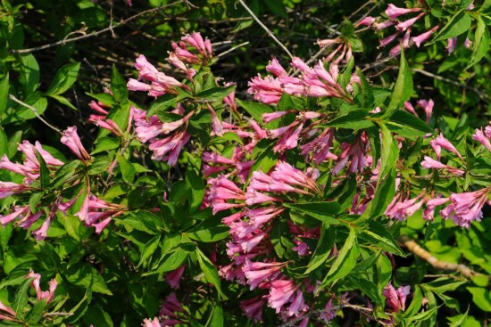 1. 붉은병꽃나무<Weigela florida (Bunge) A.DC.> 낙엽관목으로 마주 붙은 잎은 긴 타원형이고 겨드랑이에서 붉은색의 통꽃이 아래를 향해 핀다. 꽃잎 끝은 5장으로 갈라진다.