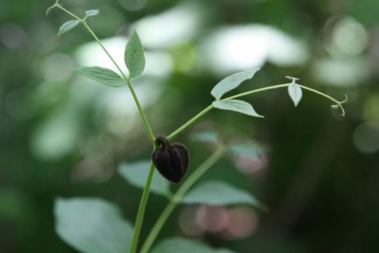 2. 검은종덩굴 <Clematis fuscaTurcz.> 잎은 5-9개의 소엽으로 구성되어 마주나며, 새순 끝의 잎은 덩굴손으로 변하기도 한다. 소엽은 길이 3-6cm의 달걀모양 또는 난상 타원형이고 잎 가장자리에 톱니가 없으며 첨두, 원저 또는 아심장저로 뒷면 맥위에 잔털이 있다.