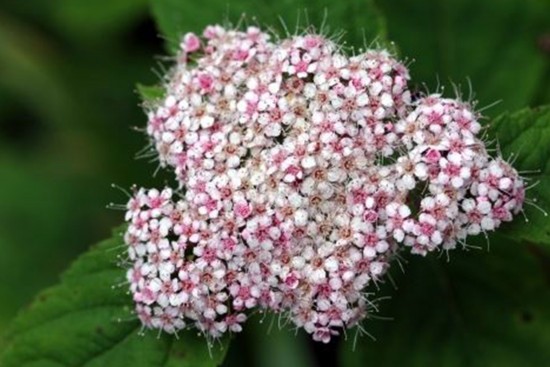 ․ 꽃 - 5~5월 피고 백색이나 중앙부에 연한 홍색이 돌며 새 가지 끝에 복산방꽃차례로 달린다. 꽃받침 조각은 뒤로 젖혀진다. 꽃잎은 둥글며 수술은 꽃잎의 2배 정도 길다.