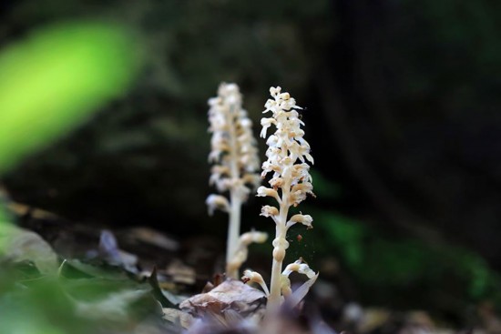 다년생의 무엽란으로 높이는 6~9cm이다. 근경은 짧고 많은 통통한 뿌리가 모여나고 뿌리끝이 위를 향한다. 줄기는 원주형으로 투명한 상아색이나 마르면 검은 갈색이 되고 표면에 털이 없다. 초상엽은 3~4장이 호생한다. 꽃은 총상화서로 포는 삼각상 피침형이며 중륵이 뚜렷하고 순판은 끝이 2갈래로 갈라진다.